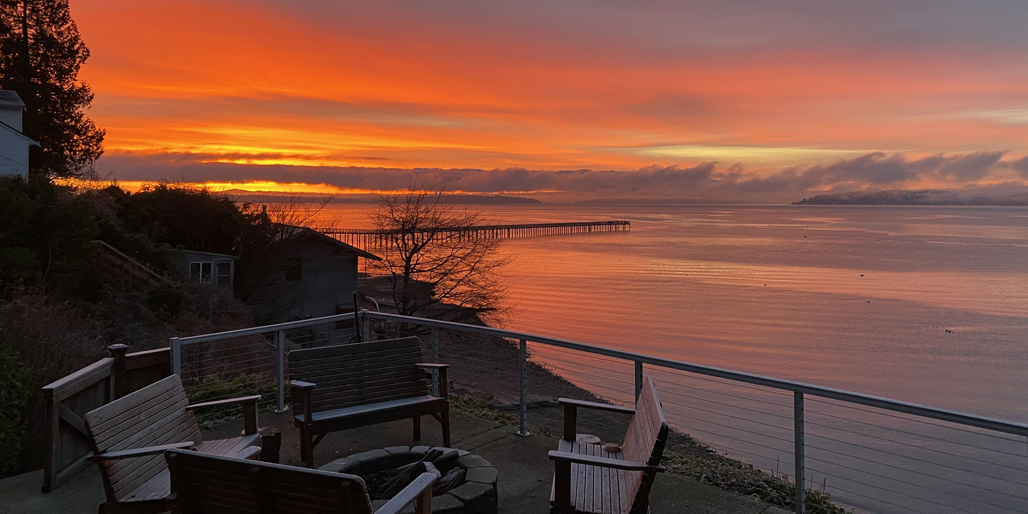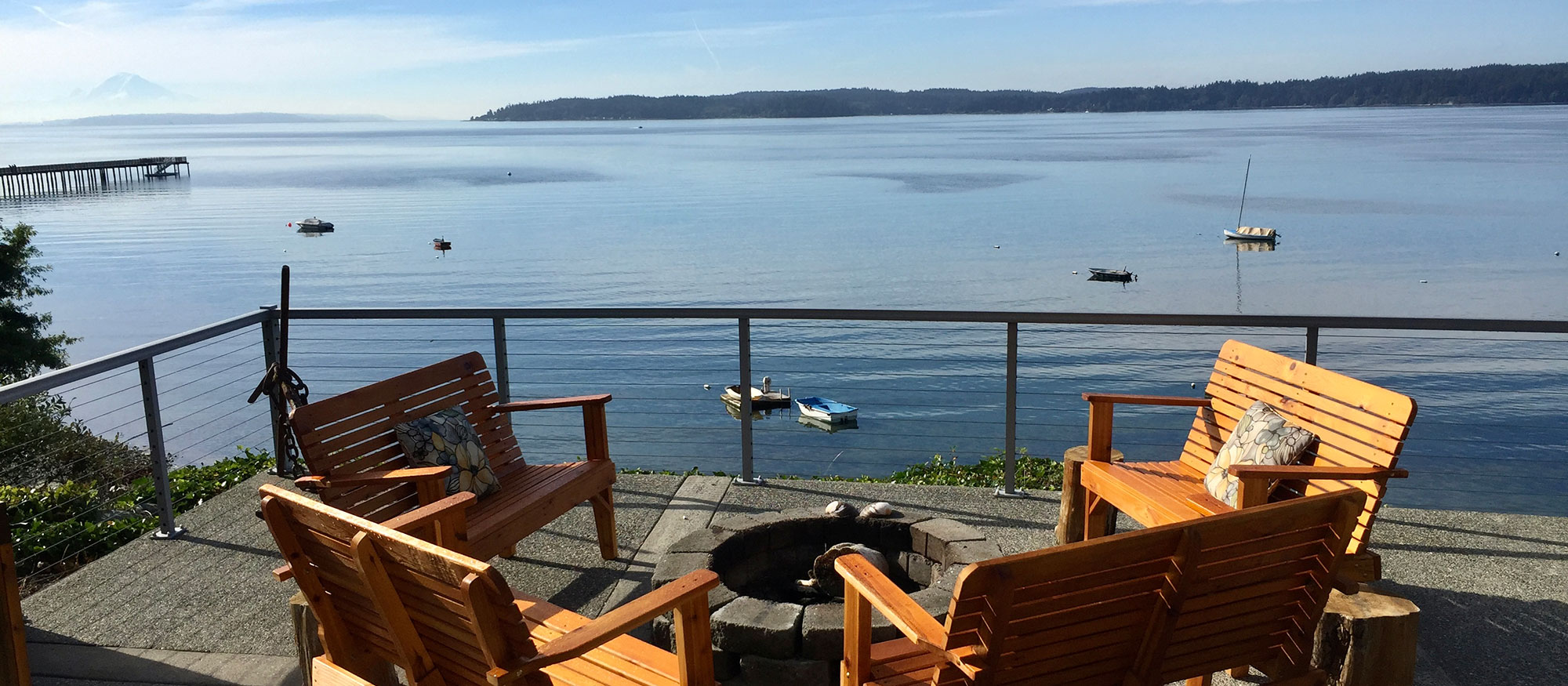 Plan your day as the tide rolls gently in and out of the bay. Smell the salt air and listen as the sounds of the beach come alive. Watch as bald eagles sore, herons wait for their perfect catch, otters play, dogs fetch and people stroll. Welcome the evening as the lights from the Seattle skyline decorate the night sky.