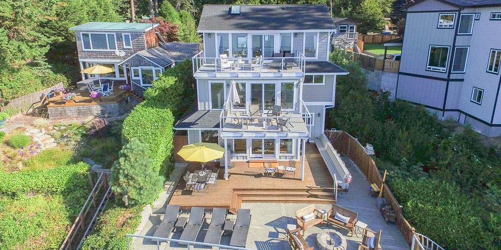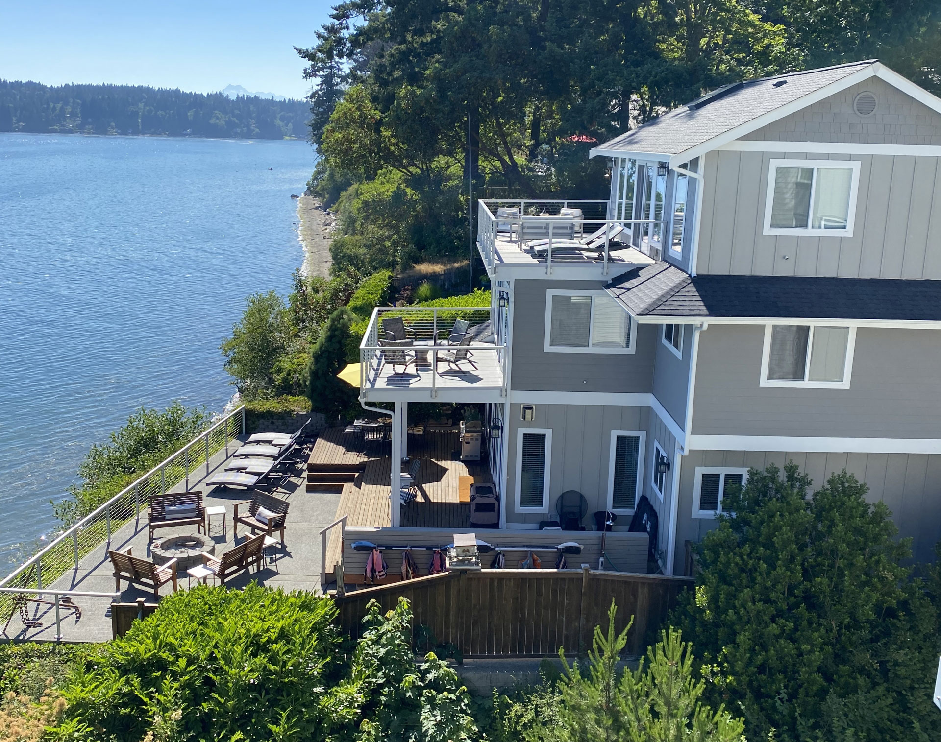 An unobstructed south facing view, tucked away in a timeless place on Puget Sound. Enjoy panoramic views of Mount Rainier to the southeast, Bainbridge Island to the south, Agate Pass to the southwest, the Olympic Mountains to the West, from atop a 30 foot bluff.